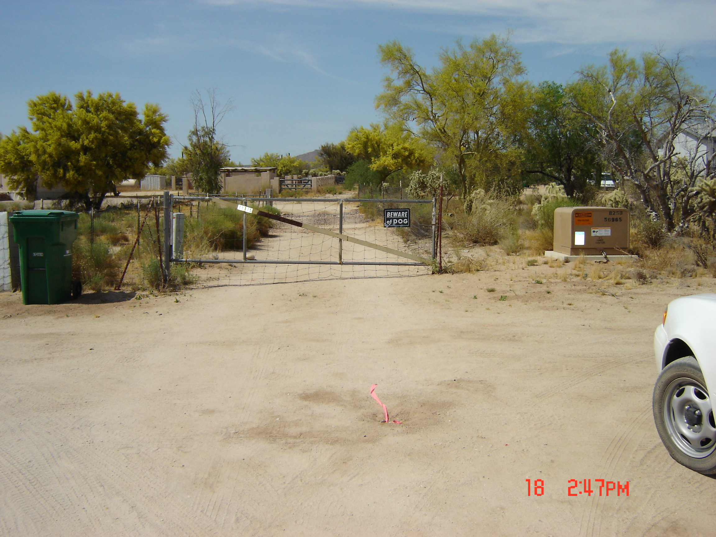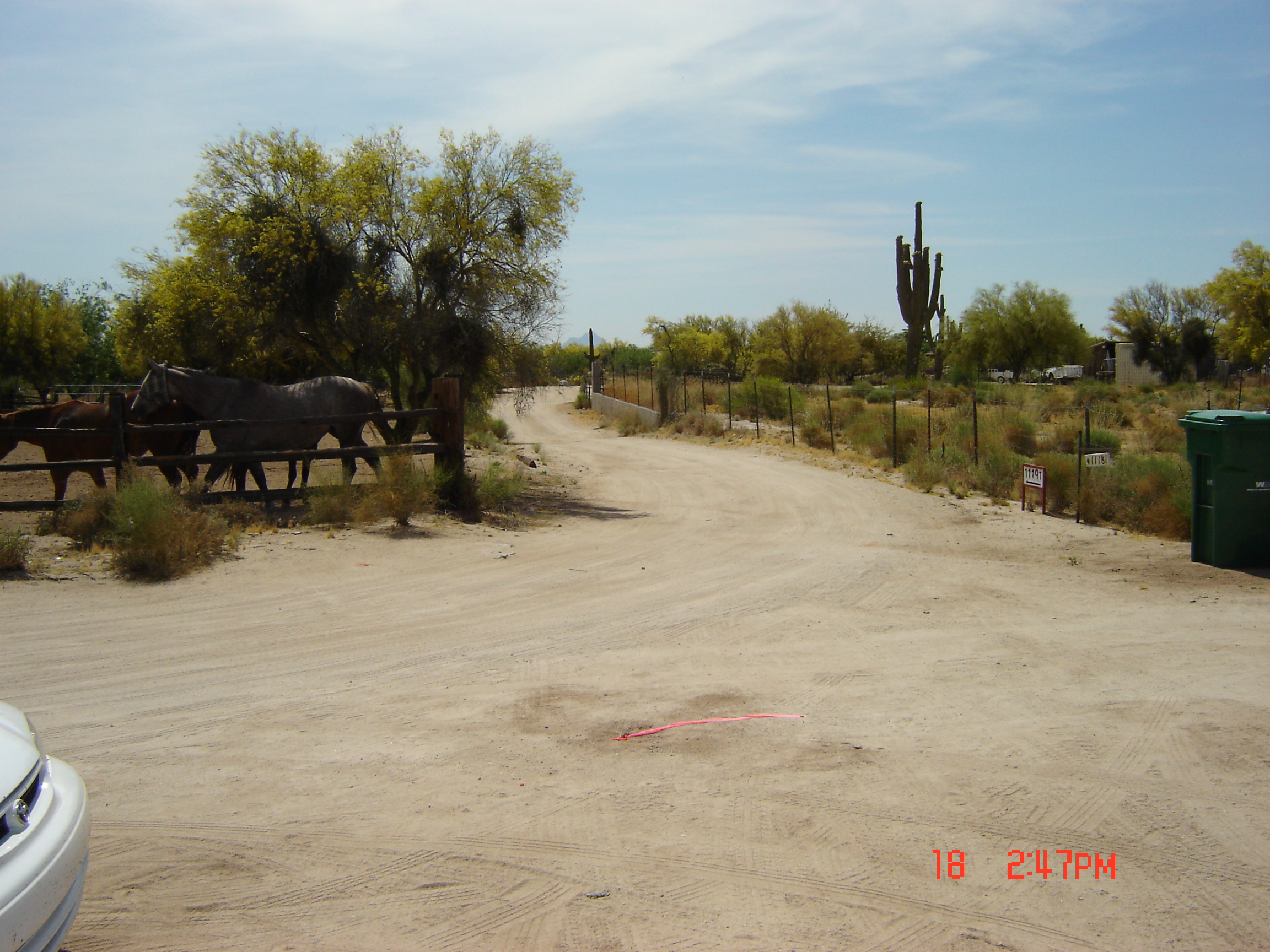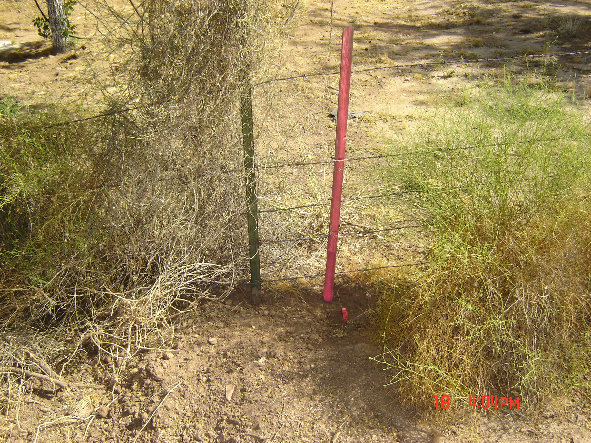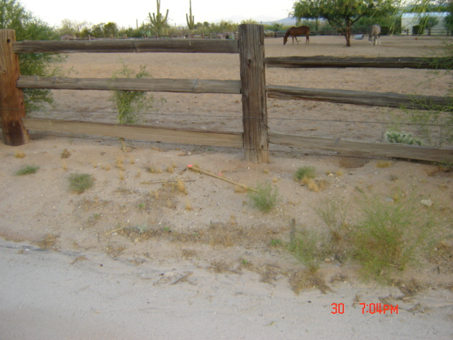 #105 = SW Survey marker is across the street at the south horse ranch neighbor's fence.