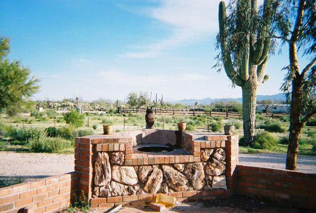 FH000004.jpg Front facing SE = BBQ pit w/stone owl